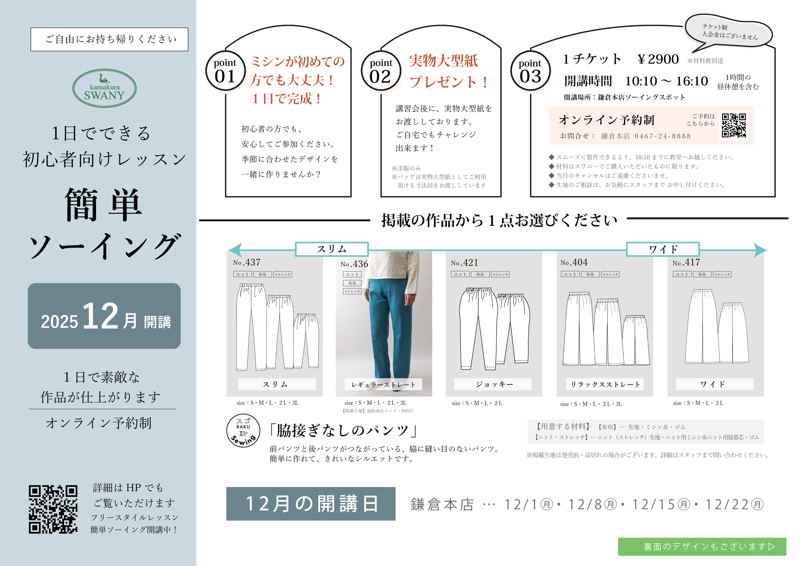 予約受付開始 鎌倉本店 12月1日(月)午前9:50~オンライン予約となります 予約の際は「教室予約について変更のお知らせ」をご覧ください。 (下記画像クリックで拡大画像がご覧いただけます)