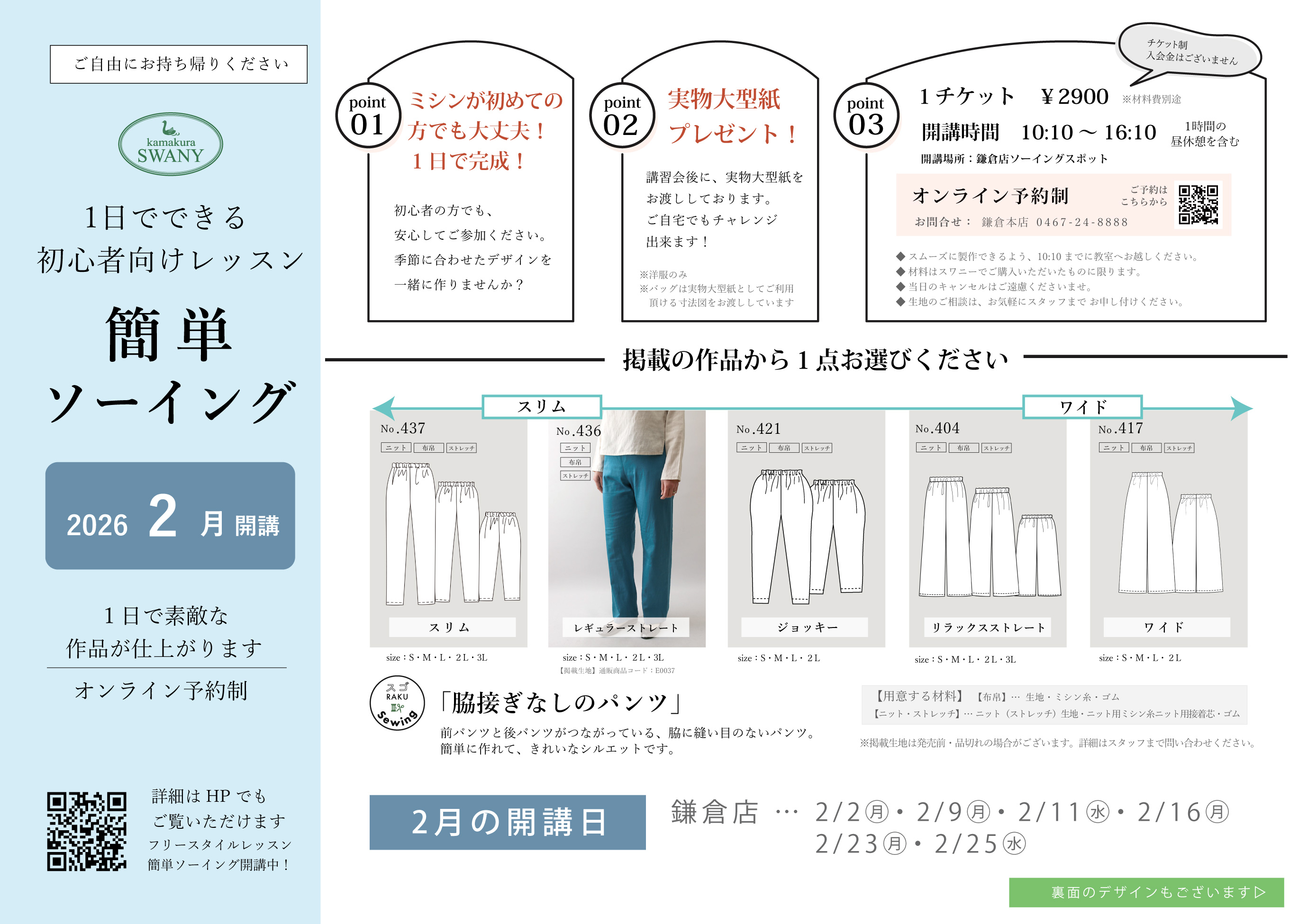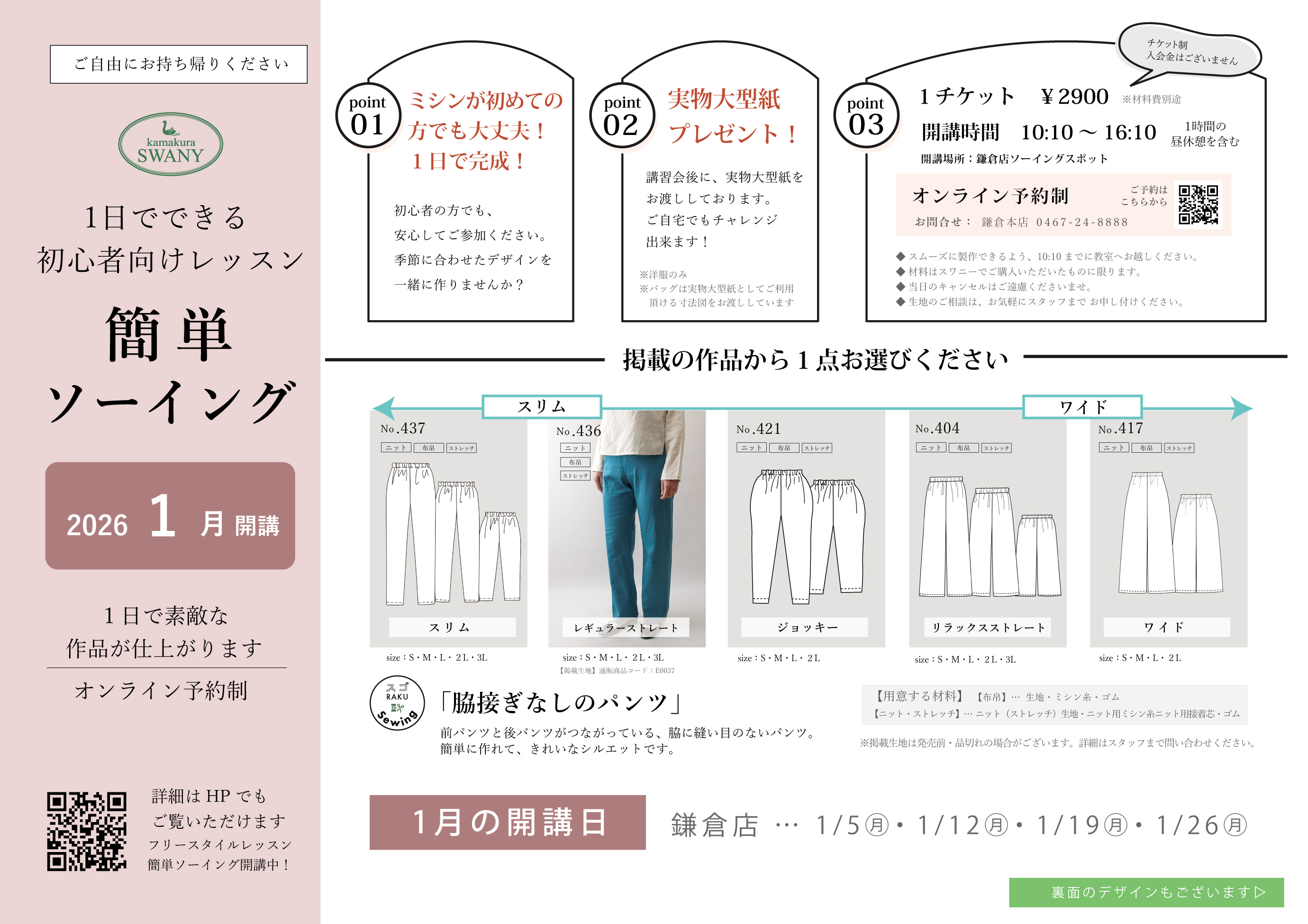 予約受付開始 鎌倉本店 1月5日(月)午前9:50~オンライン予約となります 予約の際は「教室予約について変更のお知らせ」をご覧ください。 (下記画像クリックで拡大画像がご覧いただけます)