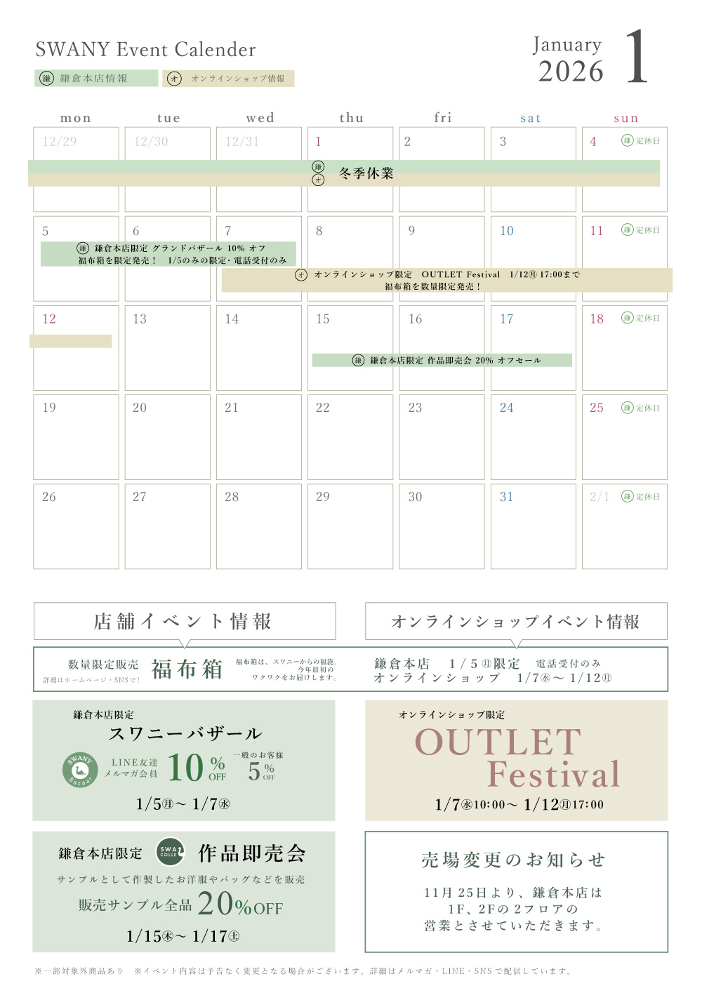 鎌倉本店実店舗のフロア案内。スワニーがひとめでわかります。