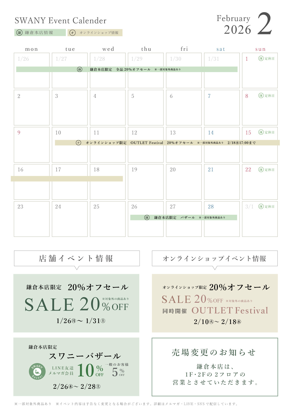 鎌倉本店実店舗のフロア案内。スワニーがひとめでわかります。